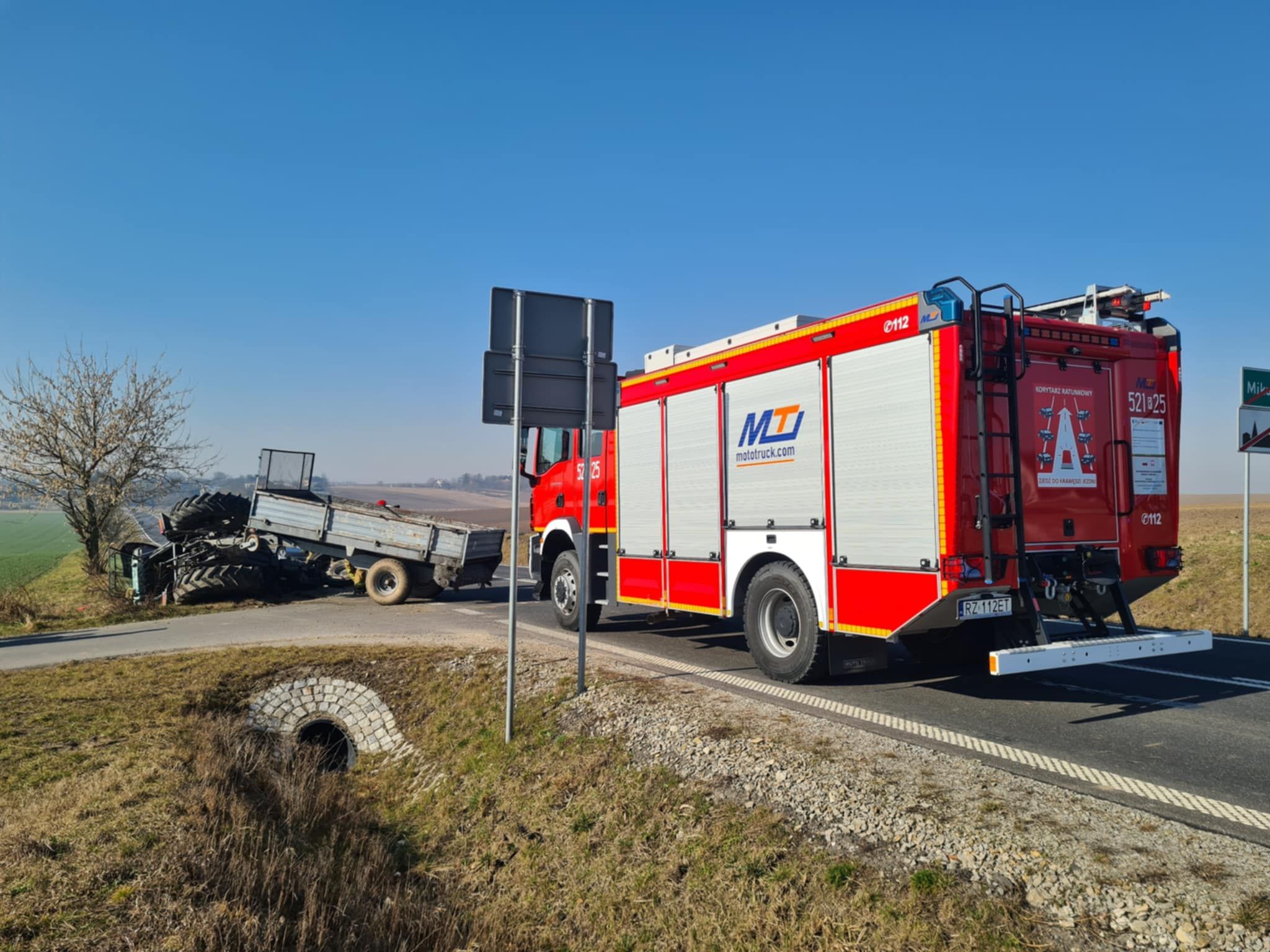 Zdjęcie: Mikulice. Kolizja traktora z bmw. Obydwa w rowie