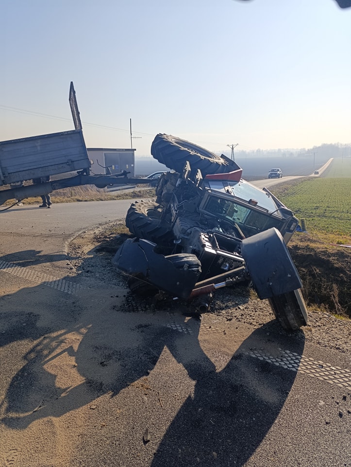 Mikulice. Kolizja traktora z bmw. Obydwa w rowie
