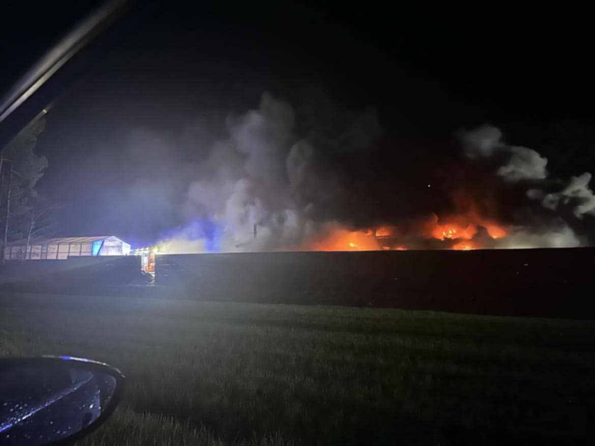 Nocny pożar magazynu firmy transportowej w Trzęsówce [FOTO]