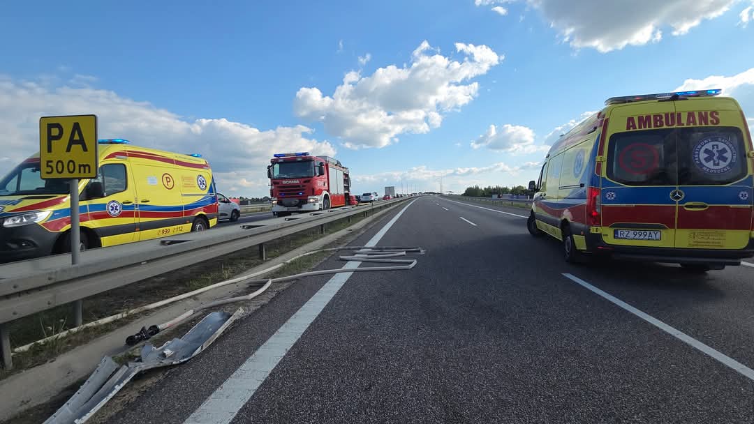 Wypadek busa na autostradzie A4 w okolicach Przeworska