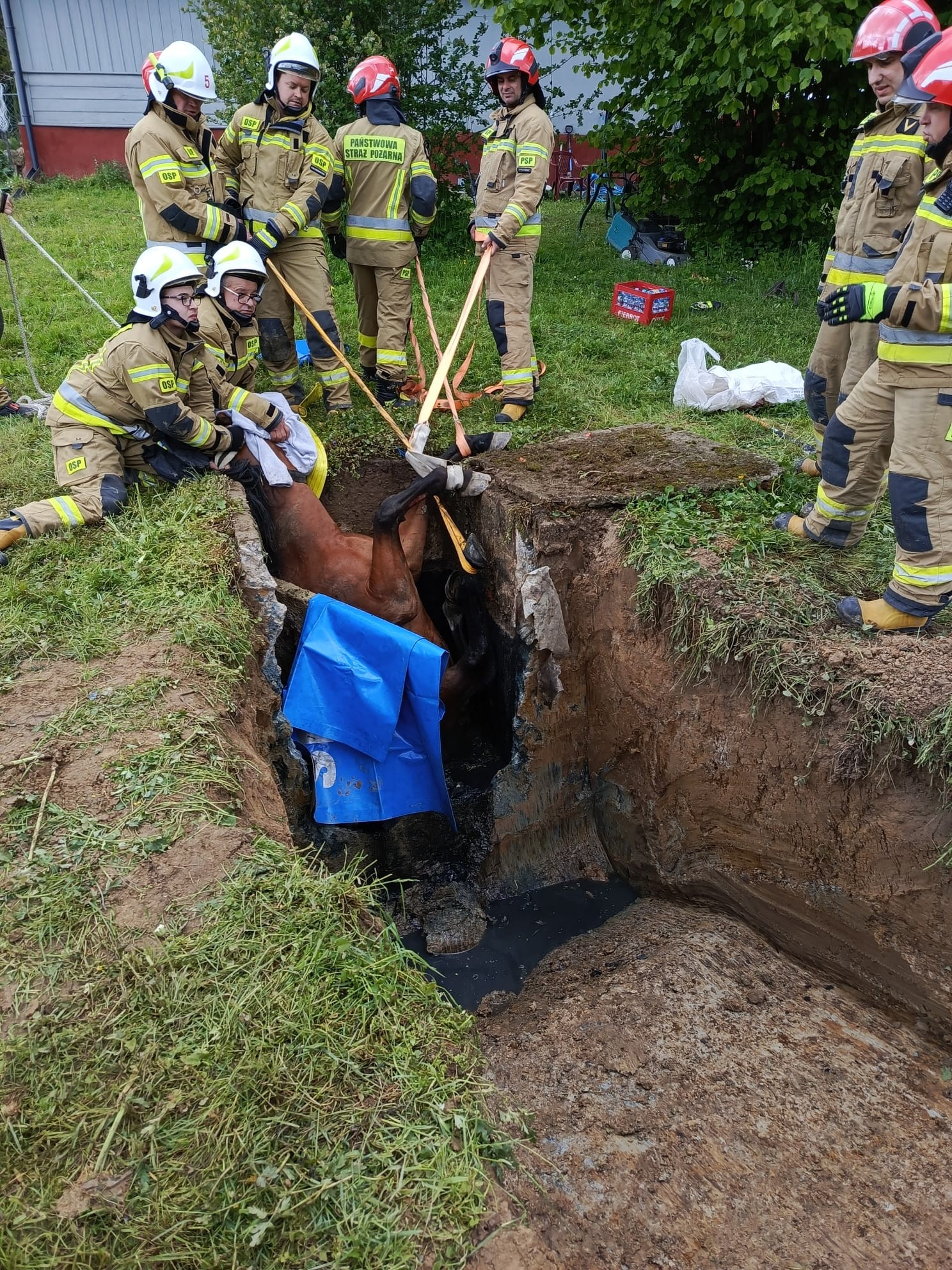 Zdjęcie: Akcja wyciągnięcia konia ze zbiornika w Strzyżowie