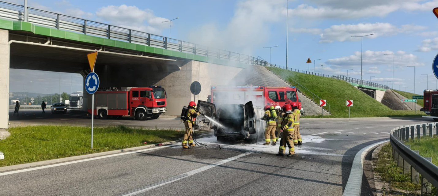Pożar samochodu na zjeździe z S19 pod Rzeszowem [ZDJĘCIA]
