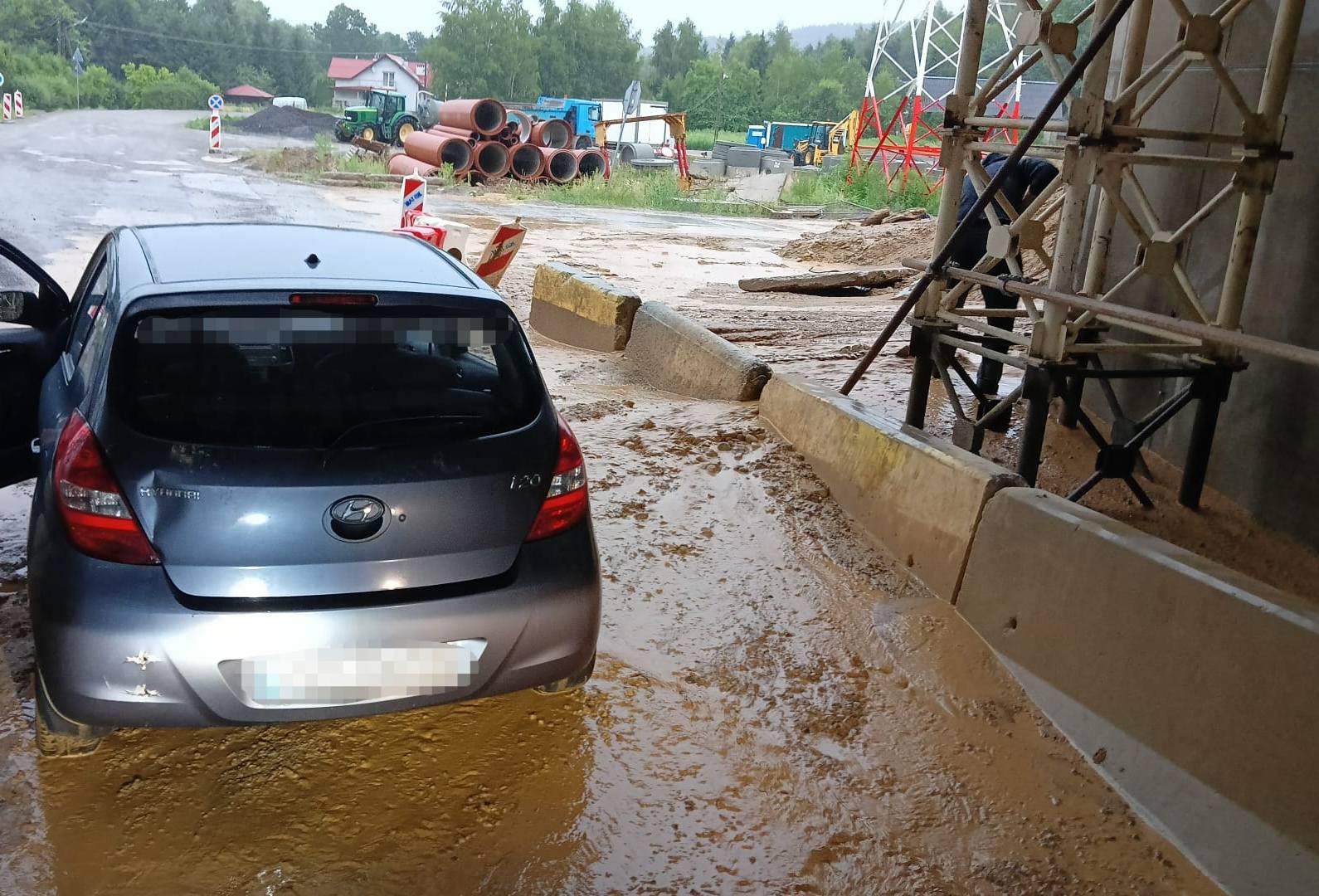 Samochód utknął w błocie pod wiaduktem S19 [FOTO]