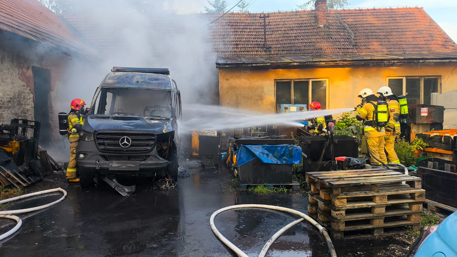 Zdjęcie: Pożar w Wysokiej. Spłonął kamper i budynki [FOTO]