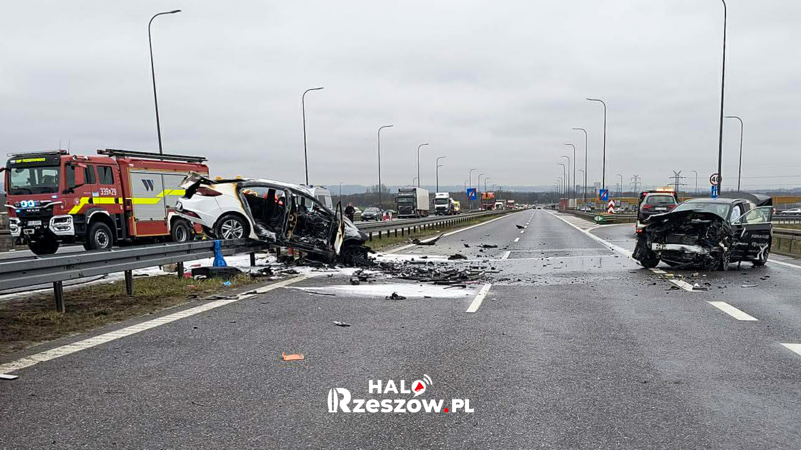 Wypadek i pożar na S19. Dwa auta rozbite, droga do Rzeszowa zablokowana