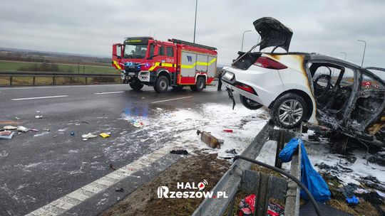 Wypadek i pożar na S19. Dwa auta rozbite, droga do Rzeszowa zablokowana