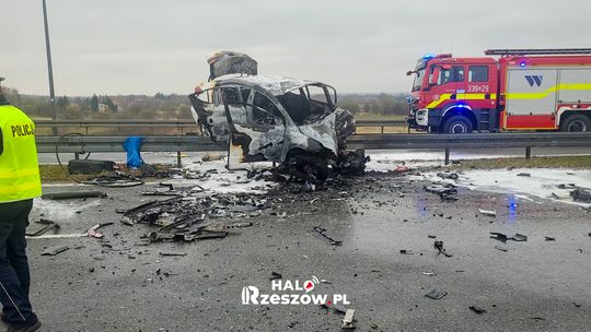 Wypadek i pożar na S19. Dwa auta rozbite, droga do Rzeszowa zablokowana