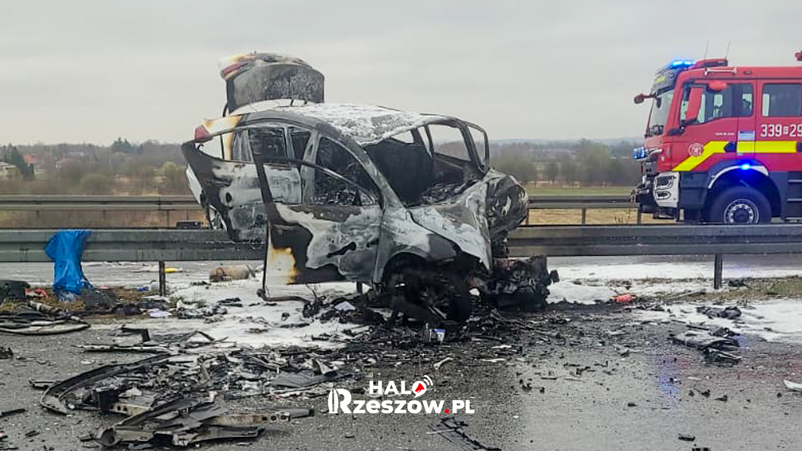 Wypadek i pożar na S19. Dwa auta rozbite, droga do Rzeszowa zablokowana