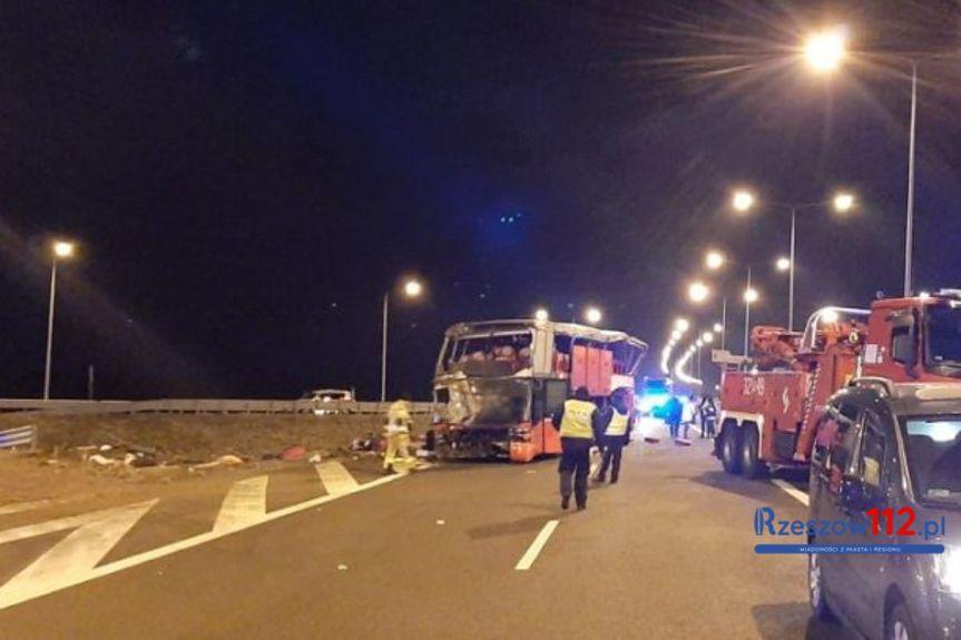 Wypadek busa na autostradzie A4 w okolicach Przeworska