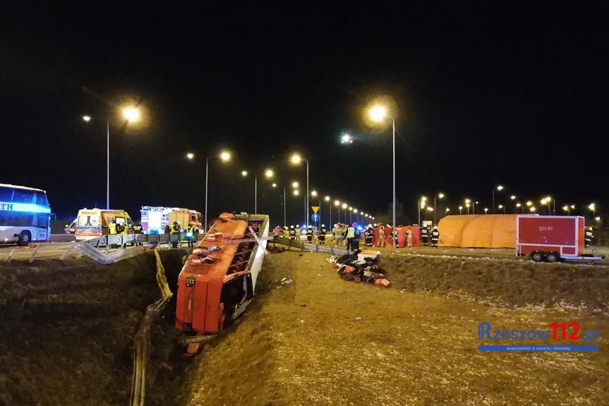 Wypadek busa na autostradzie A4 w okolicach Przeworska