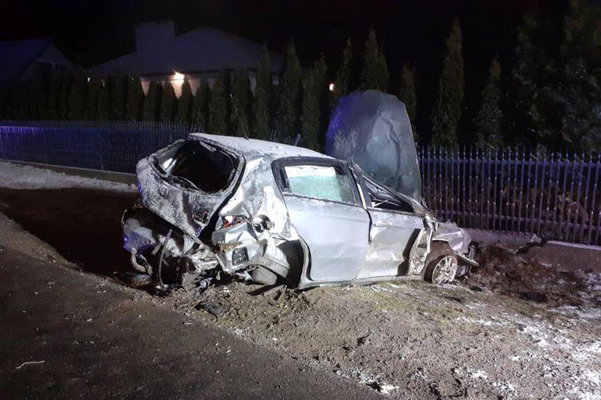 Pilzno. Auto wjechało w ogrodzenie