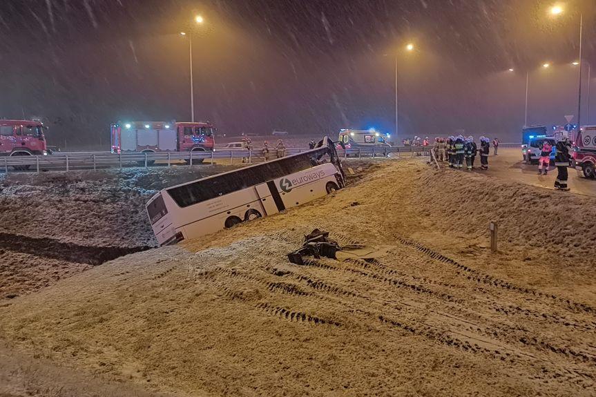 Wypadek busa na autostradzie A4 w okolicach Przeworska