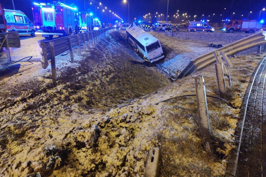 Wypadek busa na autostradzie A4 w okolicach Przeworska