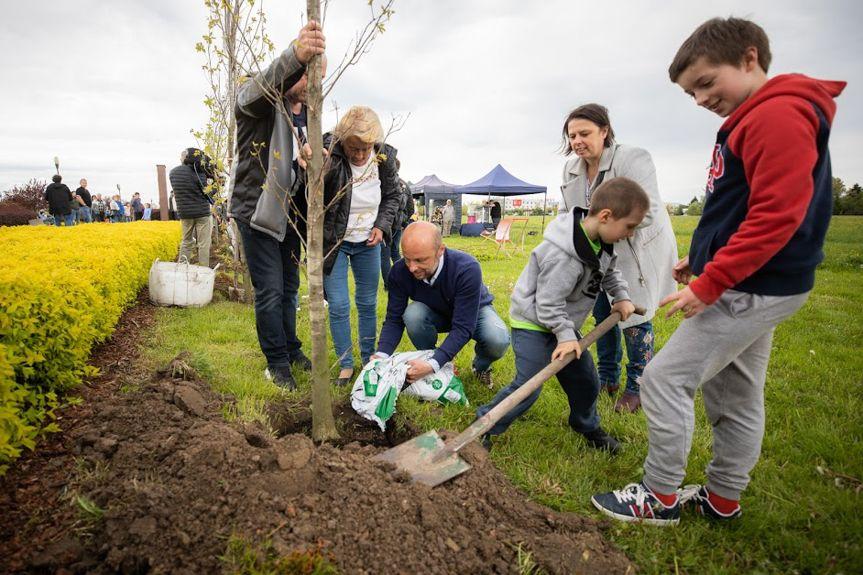 Konrad Fijołek sadzi drzewa w Parku Papieskim
