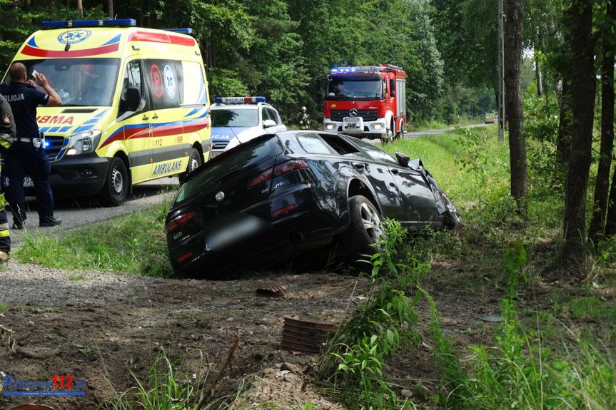 Wypadek w Budach Głogowskich. Auto wpadło do rowu