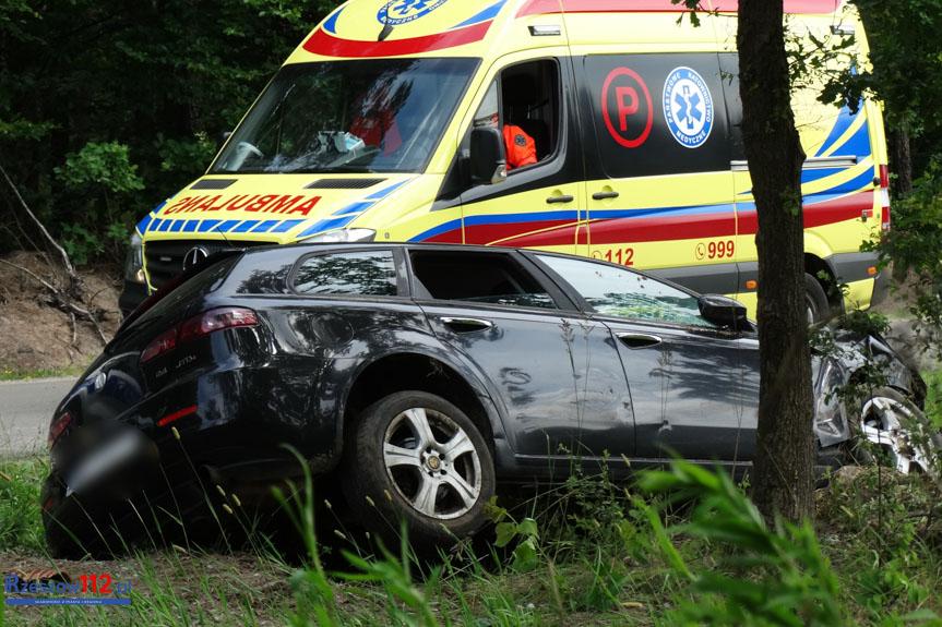 Wypadek w Budach Głogowskich. Auto wpadło do rowu