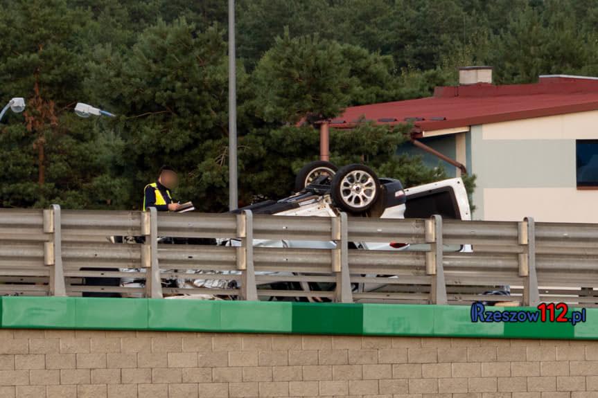 Zdjęcie: Dachowanie forda na wiadukcie w Rudnej Małej