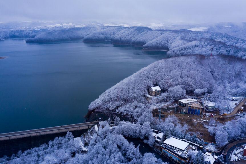 Przeciąganie linii kolejowej nad Soliną przy pomocy drona