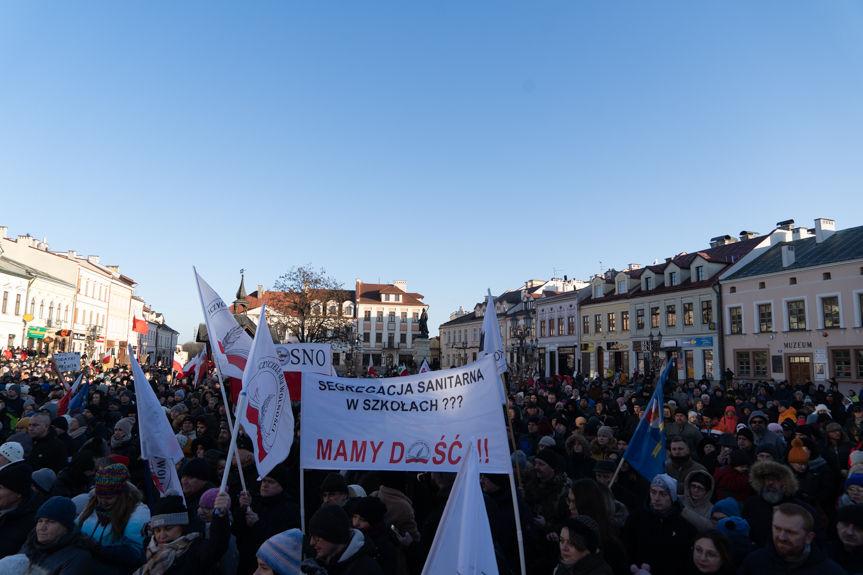 Rzeszów. Protest koronasceptyków przeciwko segregacji sanitarnej