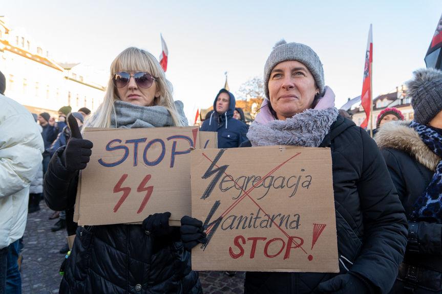 Rzeszów. Protest koronasceptyków przeciwko segregacji sanitarnej
