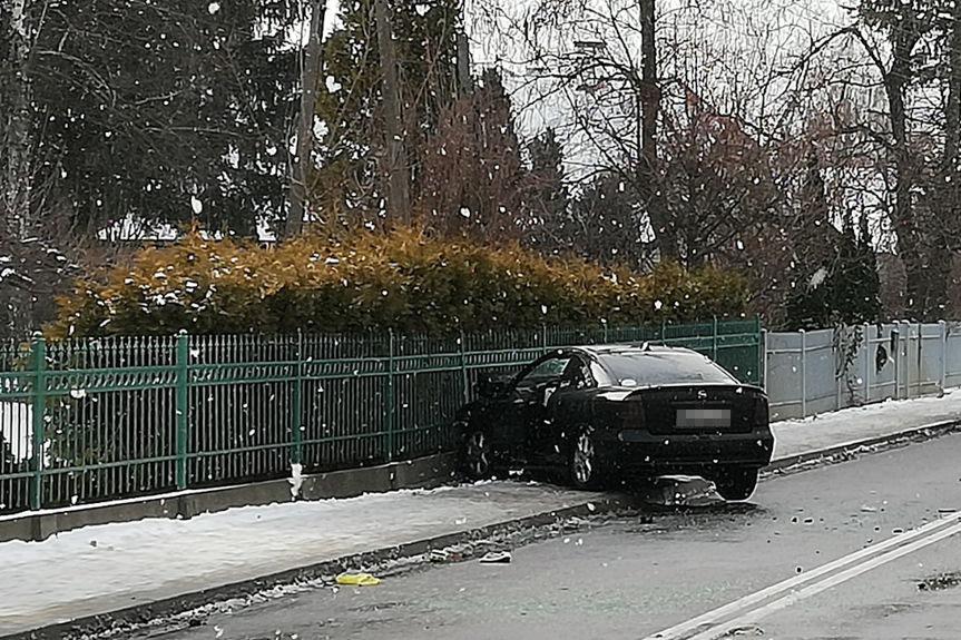 Bryła lodu spadła na samochód osobowy. Jedna osoba ranna