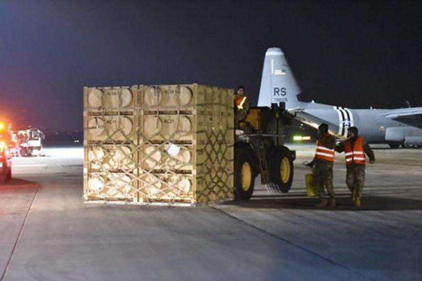 Lądowanie amerykańskiego samolotu Herkules na lotnisku w Jasionce