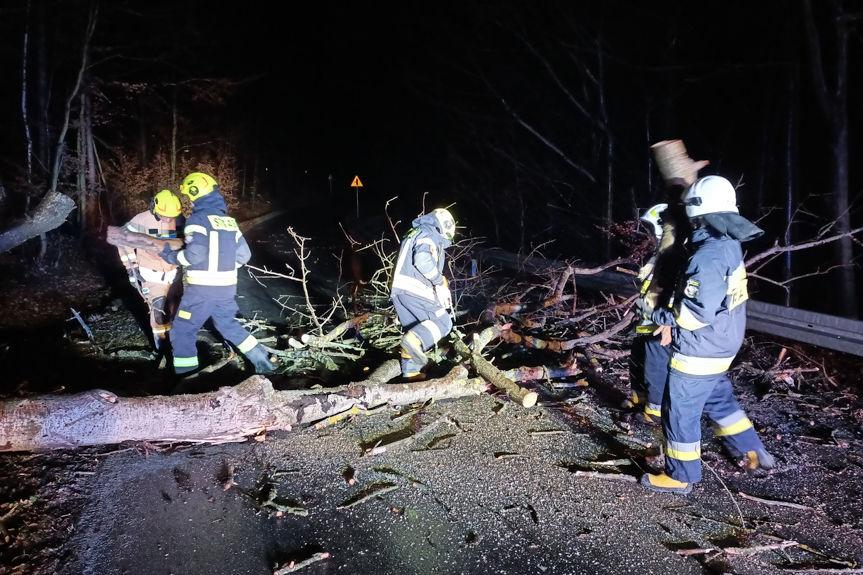 Zdjęcie: Silne wiatry na Podkarpaciu. Powalone drzewo w Herm...
