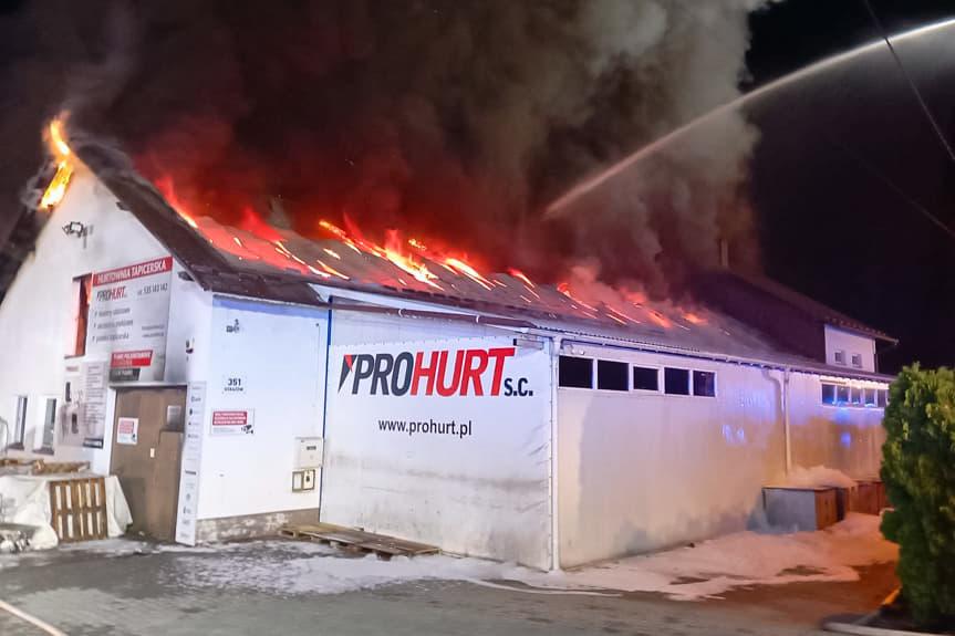 Pożar hali Prohurt w Strażowie
