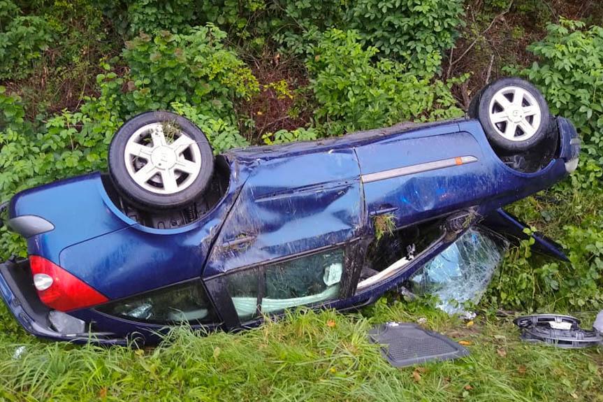 Widacz. Renault wypadł z drogi i dachował