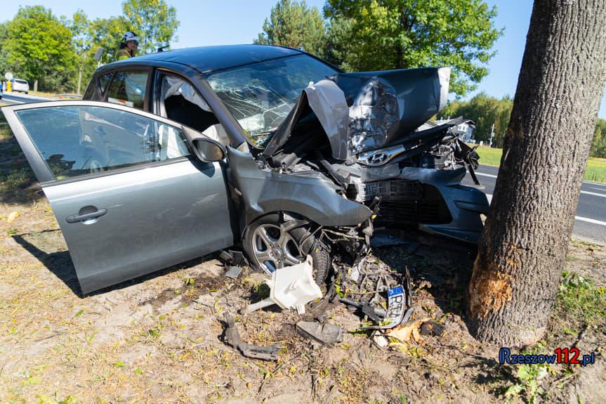 Wypadek w Widełce. Hyundai wbił się w drzewo